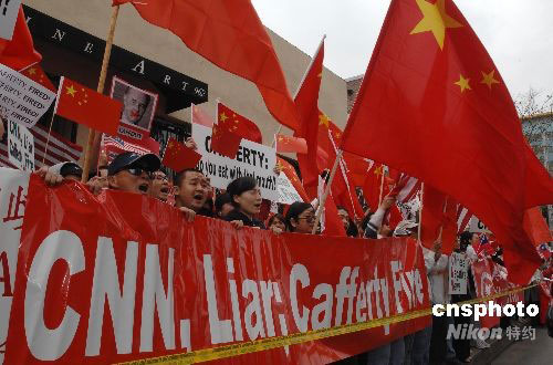 當(dāng)?shù)貢r(shí)間4月19日,洛杉磯爆發(fā)十幾年來最大規(guī)模的華人華僑抗議示威活動。數(shù)千名華人華僑和留學(xué)生在CNN洛杉磯分部門前參加和平示威,要求CNN向公開鄭重道歉,并開除卡弗蒂。除了中國大陸籍華人華僑外,很多來自越、柬、寮和印尼等國的旅美華人華僑、香港和臺灣籍僑民和留學(xué)生也加入到抗議隊(duì)伍中。中新社發(fā) 張煒 攝