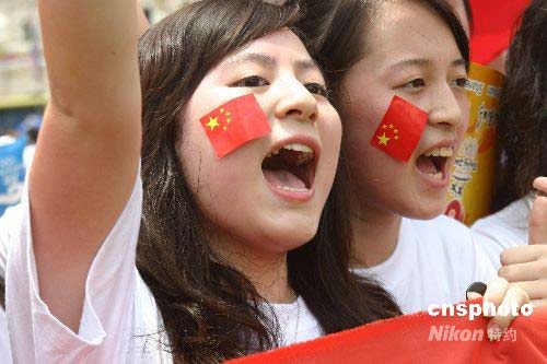 4月21日下午2時,北京奧運圣火在吉隆坡的點火起跑儀式在獨立廣場舉行。北京奧運圣火在吉隆坡的傳遞以“從古老到現(xiàn)代”為主題,從獨立廣場出發(fā)后,途徑市政廳、國家議會、國家博物館、國家清真寺、獨立體育場、吉隆坡電視塔,最終將于傍晚6時在國營石油公司雙峰塔舉行慶典儀式。整個傳遞路線約為16里,歷時4個小時。圖為中國留學(xué)生在吉隆坡為北京奧運圣火助威。作者: 沈晨