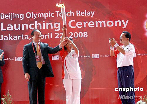 圖:奧運(yùn)圣火在雅加達(dá)的傳遞正式啟動(4)