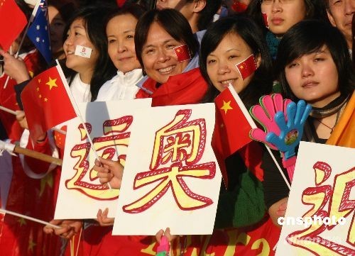堪培拉華人冒秋寒歡迎北京奧運圣火
