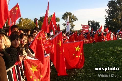 堪培拉華人冒秋寒歡迎北京奧運(yùn)圣火(2)