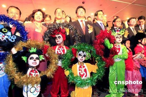 “精彩瞬間,永恒奧運(yùn)-香港·2008奧運(yùn)圖片巡展”四月二十五日在香港中央圖書(shū)館開(kāi)幕,近三百幅奧運(yùn)圖片將在全港進(jìn)行九場(chǎng)展覽,歷時(shí)三個(gè)月。北京奧組委新聞宣傳部部長(zhǎng)王惠、香港民政事務(wù)局局長(zhǎng)曾德成、中央駐港聯(lián)絡(luò)辦公室副主任李剛、外交部駐港公署副特派員楊子剛、香港奧林匹克委員會(huì)會(huì)長(zhǎng)霍震霆等眾多嘉賓出席﹐與打扮成福娃的兒童合影留念。 中新社發(fā) 王麗南 攝