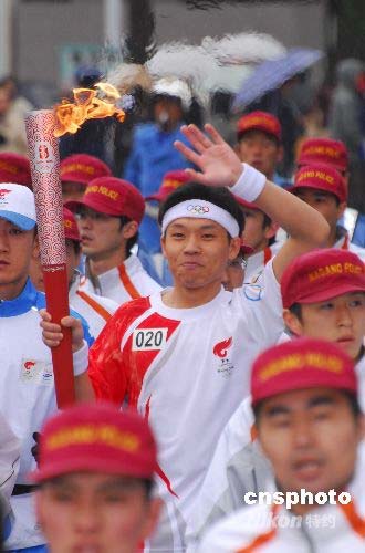 圖為中國在日留學(xué)生代表張畢積極參加火炬接力。中新社發(fā) 侯宇 攝