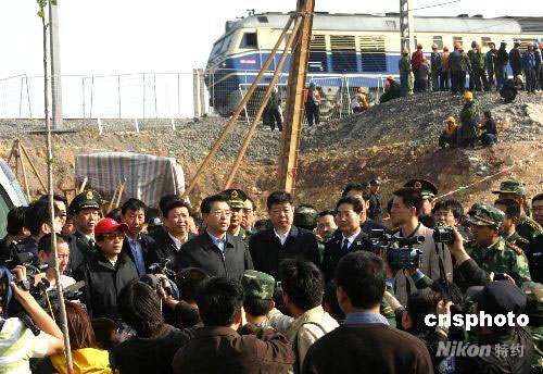 圖:張德江感謝參加膠濟(jì)鐵路事故搶險(xiǎn)的人員