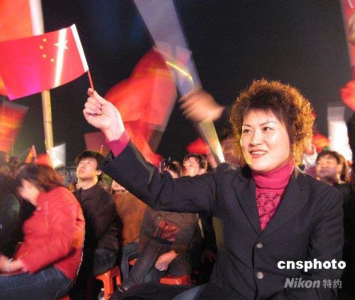 圖:秦皇島民眾山海關(guān)前歡慶奧運(yùn)倒計時一百天 (3)