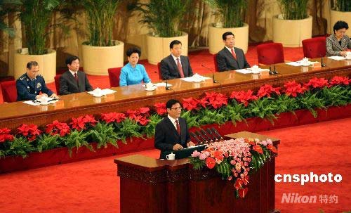 北京奧組委主席在奧運(yùn)會倒計時100天誓師大會上致辭。中新社發(fā) 任海霞 攝