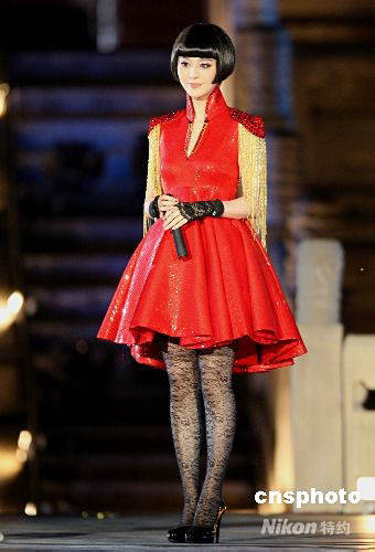 范冰冰現(xiàn)場獻歌。中新社發(fā) 趙振清 攝