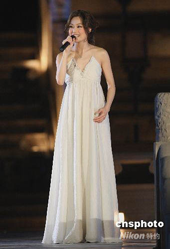 香港藝人容祖兒現(xiàn)場獻(xiàn)歌。中新社發(fā) 趙振清 攝