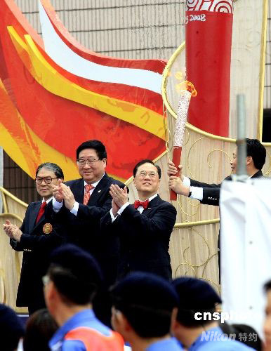 特區(qū)行政長官曾蔭權(quán)、中聯(lián)辦主任高祀仁、香港奧委會會長霍震霆等出席在尖沙咀火炬?zhèn)鬟f起跑地舉行的圣火傳遞儀式。