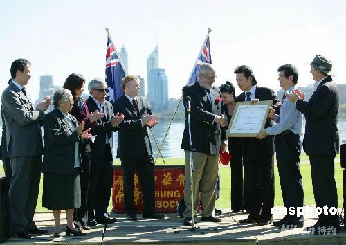 13個(gè)西澳華人社團(tuán)的代表向西澳參加北京奧運(yùn)的運(yùn)動(dòng)員捐贈(zèng)了五萬(wàn)澳幣(近四十萬(wàn)人民幣),表達(dá)西澳洲華人對(duì)澳大利亞體育事業(yè)的支持。 中新社發(fā) 高周丹 攝