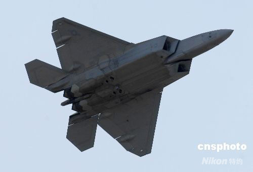 圖為全球最先進的戰(zhàn)機F-22進行飛行表演。中新社發(fā) 張煒 攝
