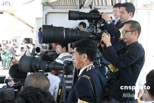 數(shù)百名中日及國際媒體記者到機場采訪胡主席抵達。中新社發(fā) 齊彬 攝