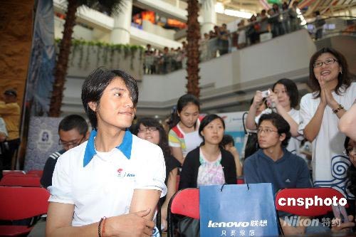 5月6日,奧運(yùn)圣火傳遞火炬手演藝明星陳坤在廣州亮相。當(dāng)日,奧運(yùn)圣火傳遞廣州站聯(lián)想火炬手在羊城集體亮相。 中新社發(fā) 廖攀 攝
