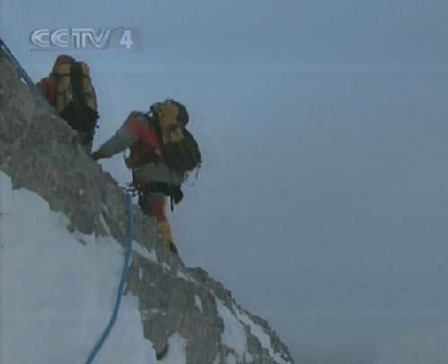 中國登山隊奧運圣火登頂珠峰突擊隊8日凌晨向珠峰峰頂發(fā)起沖擊。圖為電視截圖。