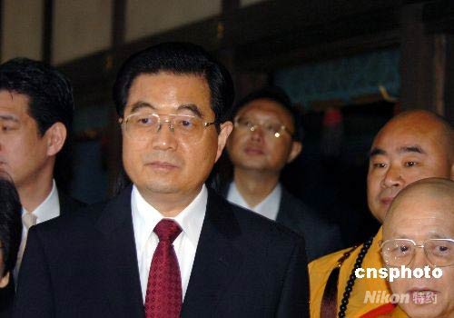 圖:胡錦濤參觀日本唐招提寺(2)