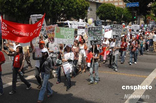 組圖:好萊塢舉行支持北京奧運(yùn)游行(3)