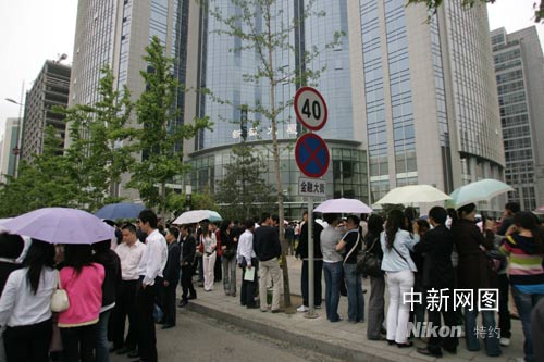 5月12日下午2時(shí)28分,四川省汶川縣發(fā)生7.8級(jí)地震,在北京也有震感。圖為北京西長(zhǎng)安街、金融街附近寫(xiě)字樓里的人員在有震感后臨時(shí)撤到樓外,等待確切消息。中新社記者 楊可佳 攝