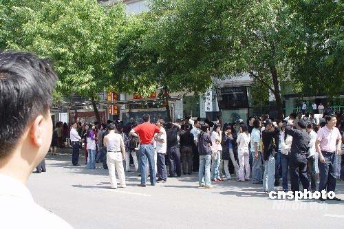 2008年5月12日下午,河南省會(huì)鄭州受到四川地震波及,該市農(nóng)業(yè)路上站滿(mǎn)了疏散的市民。中新社發(fā) 李志全 攝