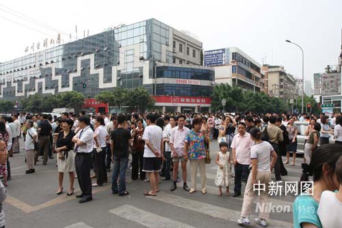 圖:成都震感強(qiáng)烈 全城市民街頭避險(xiǎn)