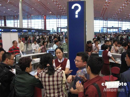 地震造成航線(xiàn)停中斷 首都機(jī)場(chǎng)三號(hào)航站樓問(wèn)訊忙
