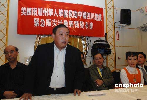 當?shù)貢r間5月12日,美國南加州主要華人華僑團體向僑界發(fā)出緊急賑災(zāi)倡議,呼吁華人華僑向四川汶川大地震災(zāi)區(qū)踴躍捐獻。中新社發(fā) 張煒 攝