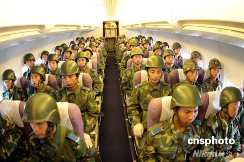 救災(zāi)官兵乘飛機(jī)飛赴災(zāi)區(qū)。譚 超 張雷 攝影報(bào)道