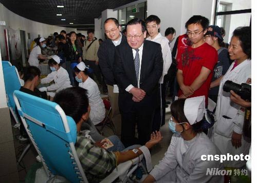 清華大學(xué)學(xué)子為地震災(zāi)區(qū)獻血 校長顧秉林慰問同學(xué)