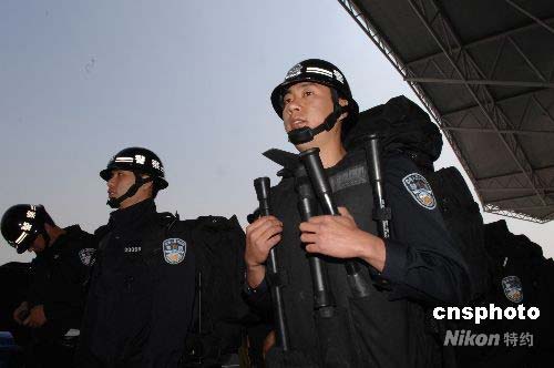 5月13日中午12時(shí),天津公安局特警總隊(duì)200名特警隊(duì)員攜帶破拆工具、地高壓氣墊手動(dòng)救援工具組照明及通訊等工具在天津國際濱海機(jī)場(chǎng)登機(jī),13時(shí)44分乘國際航空公司包機(jī)飛赴四川,當(dāng)天下午4時(shí)46分抵達(dá)四川成都,按照公安部的指令即將奔赴北川重災(zāi)區(qū),投入到維護(hù)災(zāi)區(qū)社會(huì)治安和搶險(xiǎn)救災(zāi)工作中。中新社發(fā) 蘇振強(qiáng) 攝
