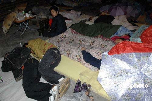 圖:成都地震災區(qū)民眾露宿街頭立交橋下(3)