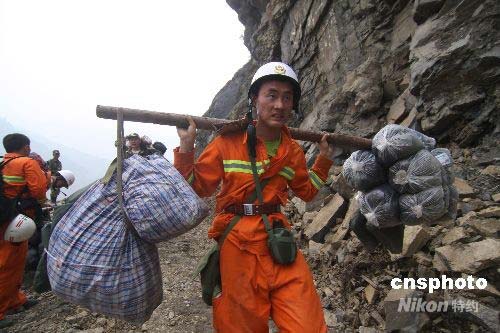 5月16日,近萬名解放軍、武警官兵加入到對四川地震重災區(qū)汶川映秀鎮(zhèn)的各項救援工作中。中新社發(fā) 郭國權 攝