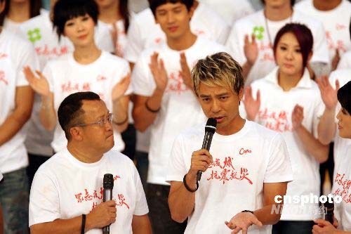 李克勤出席《眾志成城抗震救災(zāi)》晚會(huì)為四川地震災(zāi)民籌款。中新社發(fā) 武仲林 攝