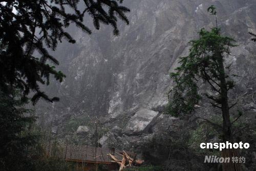 圖為臥龍?jiān)诘卣鸷蟪霈F(xiàn)山體滑坡。中新社發(fā) 臥龍 攝