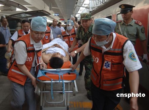 組圖:地震災(zāi)區(qū)首趟運(yùn)送傷員專(zhuān)列順利抵達(dá)重慶(5)