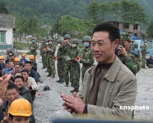 5月20日,好消息傳來(lái),在清平鄉(xiāng)營(yíng)救點(diǎn),李佳的爸爸礦工李樂良被中國(guó)空降兵從綿竹縣清平鄉(xiāng)磷礦中營(yíng)救出來(lái)。李樂良淚流滿面,感謝子弟兵給了他和女兒第二次生命。