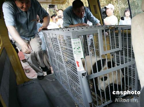 八只來自四川災(zāi)區(qū)的奧運(yùn)大熊貓平安抵京 (2)