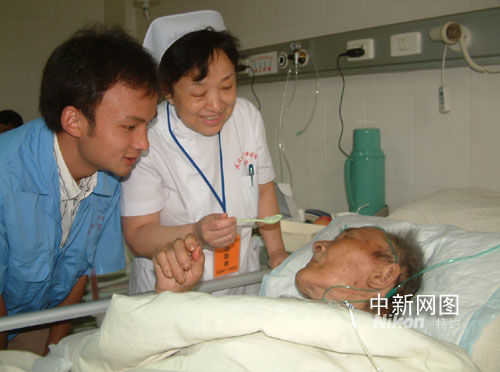 24日晚18點(diǎn),長途轉(zhuǎn)運(yùn)到武漢大學(xué)中南醫(yī)院的90歲的老人,多發(fā)肋骨骨折,沒有家屬陪伴,醫(yī)院的老護(hù)士和志愿者一口一口地喂他吃著醫(yī)院免費(fèi)提供的晚餐。據(jù)了解,該院為全部轉(zhuǎn)運(yùn)到該遠(yuǎn)的38位四川災(zāi)區(qū)病人免費(fèi)提供了衣、食、住,讓他們能享受到最好的醫(yī)療服務(wù)。