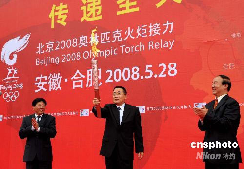 圖:安徽省委書記王金山擎祥云圣火