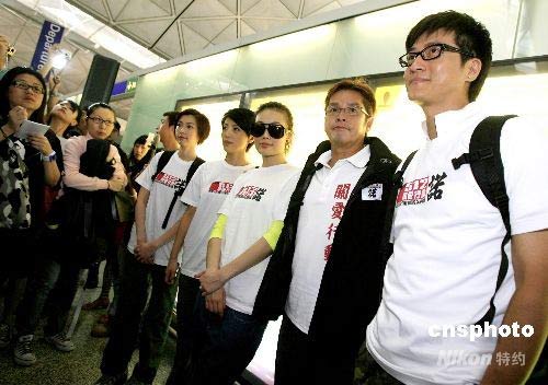 譚詠麟為啟程赴四川地震災區(qū)探望的香港藝人送行