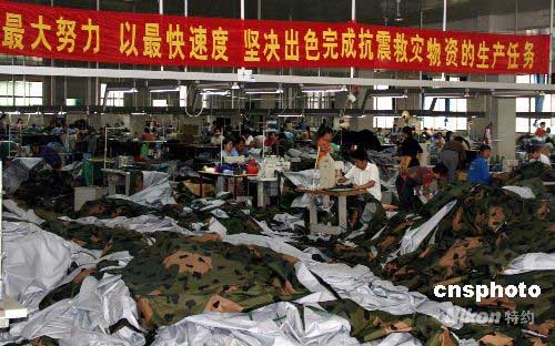 圖:野營用品企業(yè)開足馬力生產(chǎn)救災(zāi)帳篷(2)