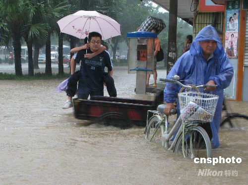 5月30日,廣西柳州暴雨如注,降雨量達100毫米以上,市內(nèi)多處低洼地段發(fā)生嚴重內(nèi)澇,市民相互幫助,從容面對。據(jù)悉,強降雨自25日襲擊廣西大部分地區(qū)以來,引發(fā)嚴重的山洪災(zāi)害,目前已造成4人死亡,118000人受災(zāi)。中新社發(fā) 蒙鳴明 攝