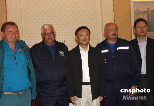 5月30日,中國(guó)外交部部長(zhǎng)楊潔篪前往成都市錦江賓館會(huì)見(jiàn)俄羅斯醫(yī)療隊(duì),高度贊揚(yáng)了他們對(duì)災(zāi)區(qū)民眾的關(guān)心和國(guó)際人道主義精神。中新社發(fā) 黃榮 攝