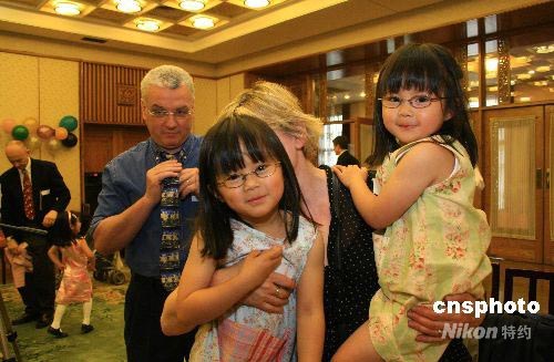 中國孤兒及其英國父母作客中國使館過“六一”
