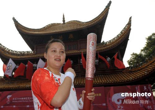 圖:奧運冠軍龔智超岳陽樓前傳遞奧運圣火
