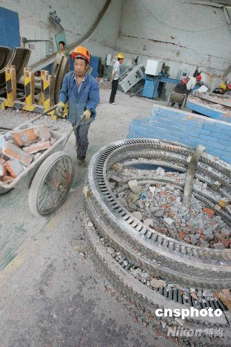 圖:東方汽輪機(jī)廠清理災(zāi)后廠房準(zhǔn)備重建(2)