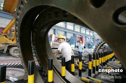 6月4日,四川綿竹漢旺鎮(zhèn)的東方汽輪機(jī)廠清理災(zāi)后廠房,為重建做準(zhǔn)備。中新社發(fā) 杜洋 攝