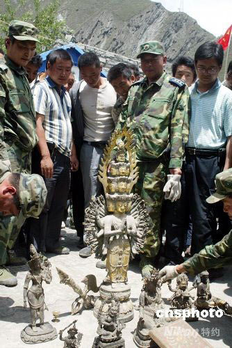 圖:解放軍將搜尋到的文物轉(zhuǎn)交政府工作人員