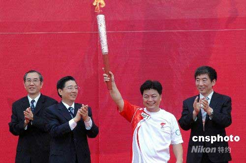 2008年6月7日,奧運(yùn)圣火在南寧傳遞。中新社發(fā) 駱文剛 攝