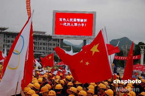 奧運(yùn)圣火在廣西百色傳遞 當(dāng)?shù)孛癖娋拺燕囆∑?