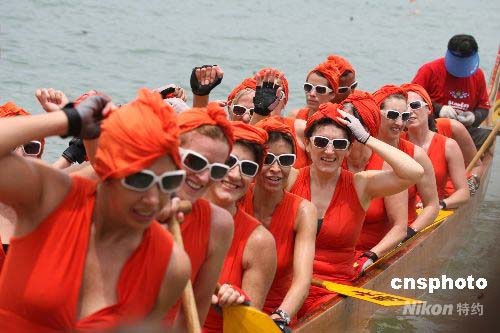 圖:外籍美女隊角逐香港國際龍舟錦標(biāo)賽