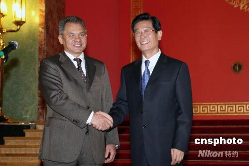 圖為劉古昌大使與俄緊急情況部部長(zhǎng)紹伊古共同出席招待會(huì)。中新社發(fā) 田冰 攝